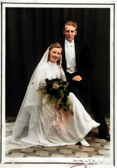 Else's forældres farvelagte bryllupsbillede fra 11/8-1944.