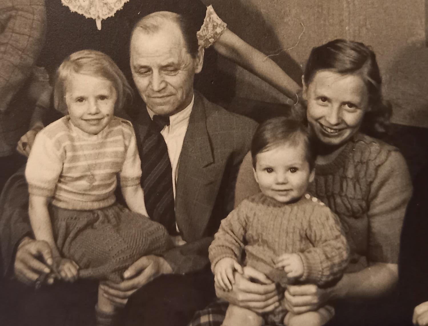 Elses morfar Viggo, med Else på skødet og Elses mor - Hilda, med Palle på skødet.